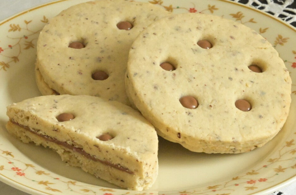 Der Luxuriöse unter den Cookies: Zarter Haselnussmürbeteig, gefüllt mit dunklem Nougat – einfach unwiderstehlich.